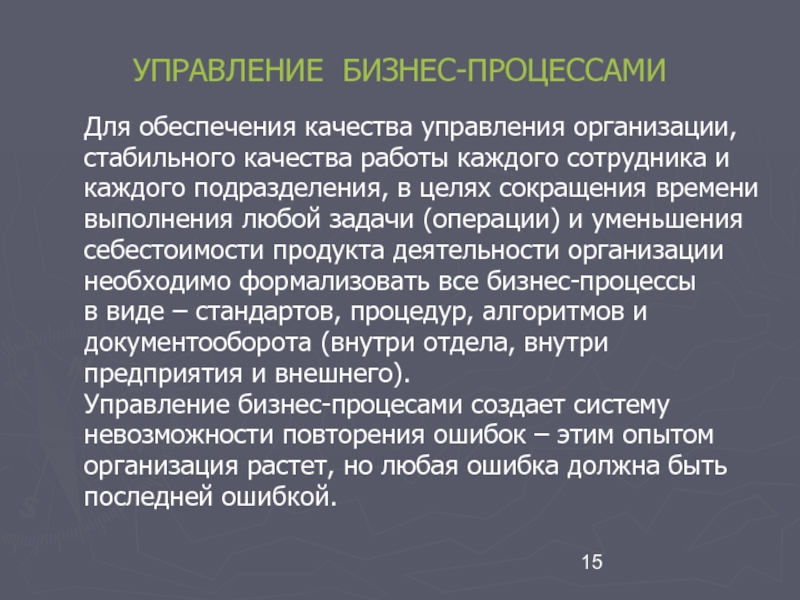 Слайд 15УПРАВЛЕНИЕ БИЗНЕС-ПРОЦЕССАМИ