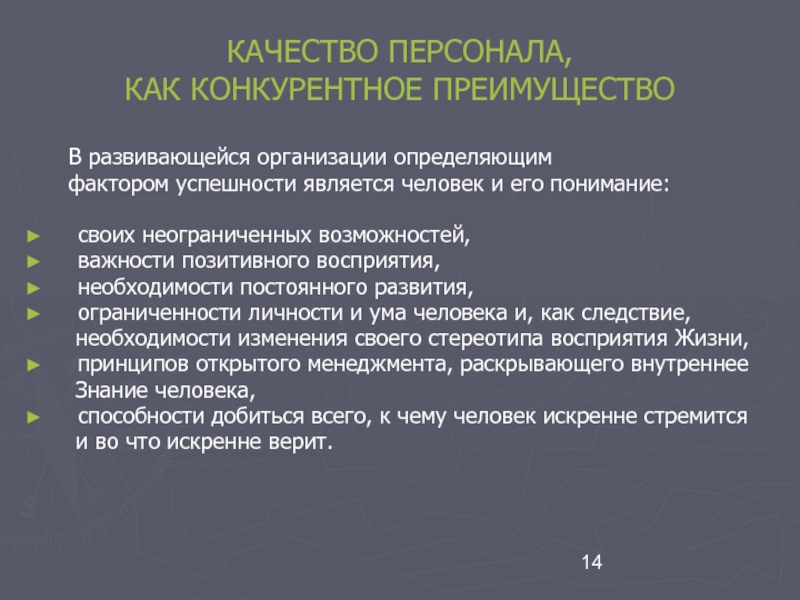Слайд 14КАЧЕСТВО ПЕРСОНАЛА,