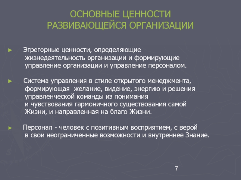 Слайд 7ОСНОВНЫЕ ЦЕННОСТИ
