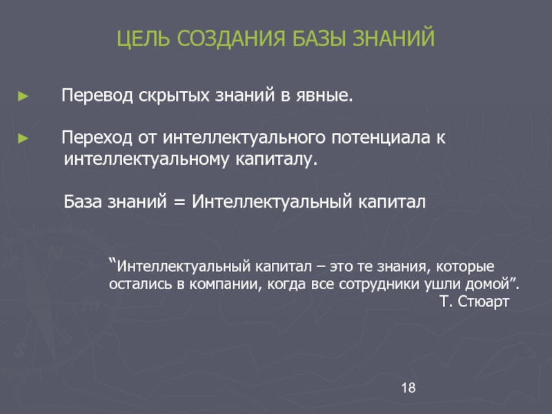 Слайд 18ЦЕЛЬ СОЗДАНИЯ БАЗЫ ЗНАНИЙ
