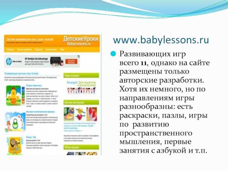 Развивающих игр всего 11, однако на сайте размещены только авторские разработки. Хотя