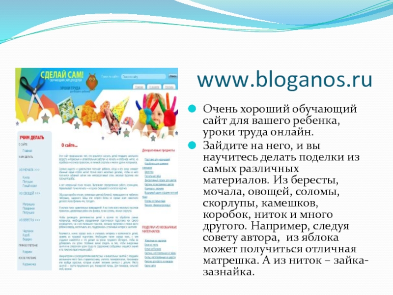 Очень хороший обучающий сайт для вашего ребенка, уроки труда онлайн.