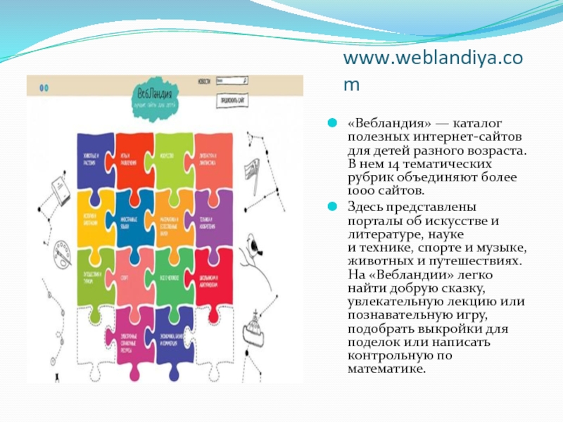 «Вебландия» — каталог полезных интернет-сайтов для детей разного возраста. В нем