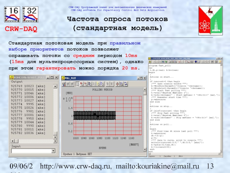 Crw32 (версия CRW-DAQ для Windows) – система “мягкого” реального времени с временем реакции порядка 10 ms.