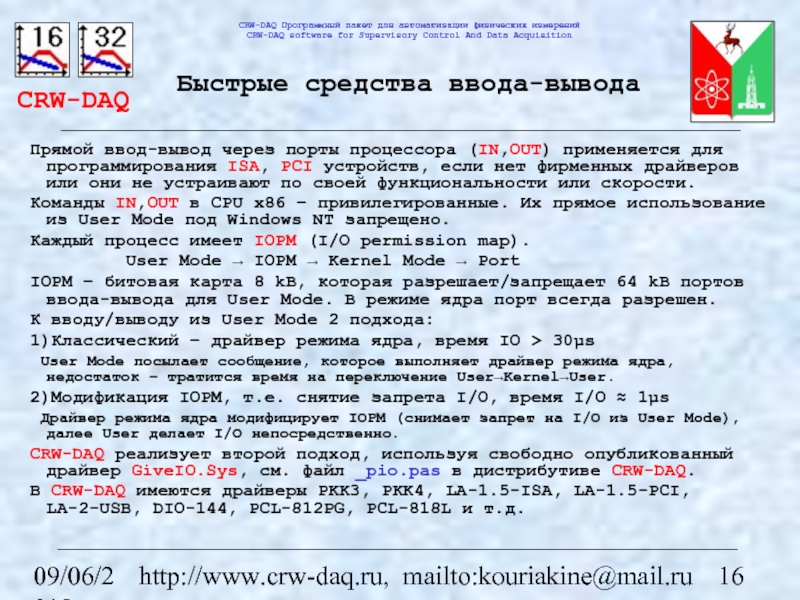 http://www.crw-daq.ru, mailto:kouriakine@mail.ru