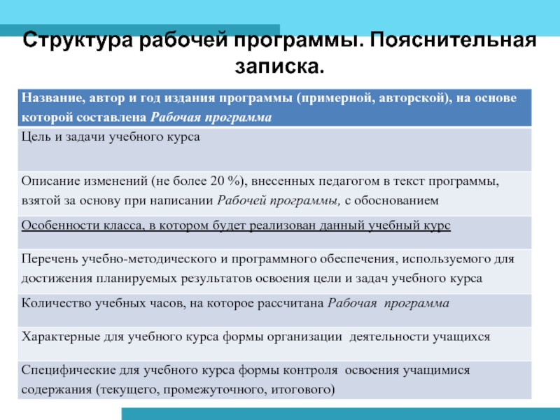 Слайд 34Структура рабочей программы. Пояснительная записка.
