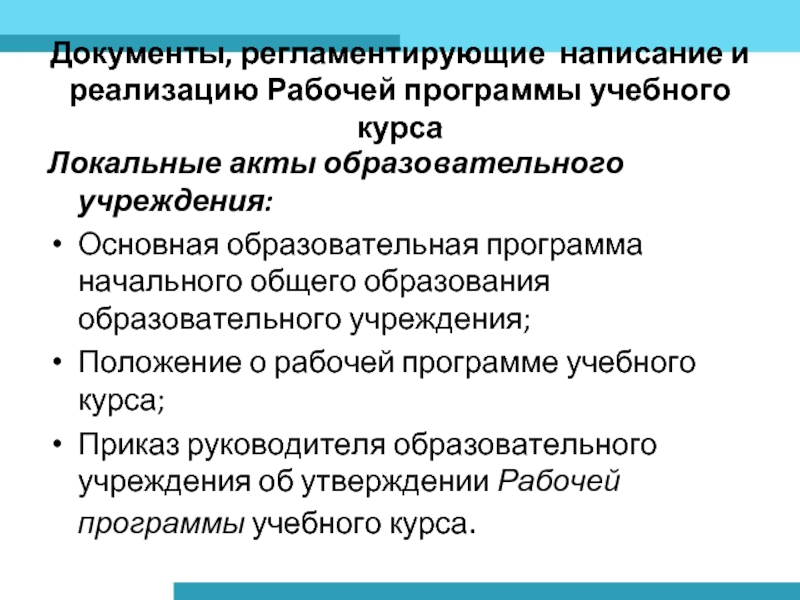 Слайд 26Документы, регламентирующие написание и реализацию Рабочей программы учебного курса