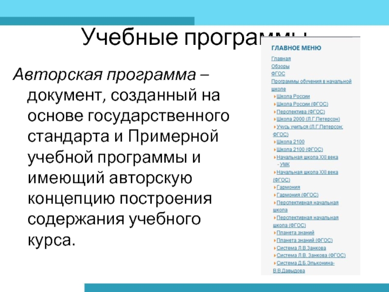 Авторская программа – документ, созданный на основе государственного стандарта и