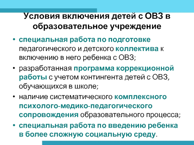 Слайд 2Условия включения детей с ОВЗ в образовательное учреждение