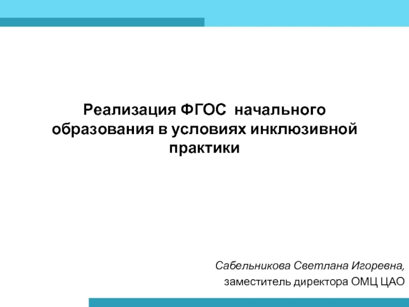 Слайд 1Реализация ФГОС начального образования в условиях инклюзивной практики