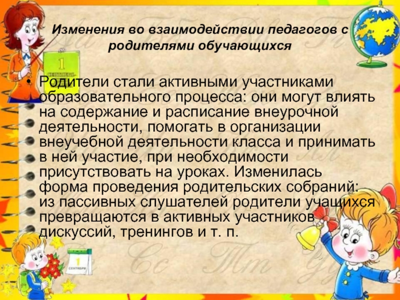 Общение по телефону, в ходе родительского собрания, при личной встрече.