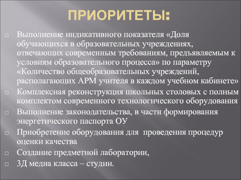 Слайд 6ПРИОРИТЕТЫ: