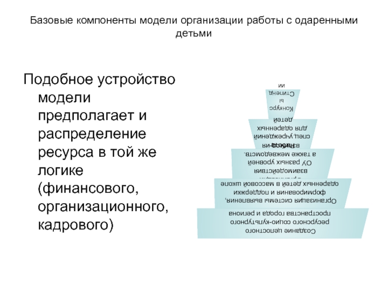 Слайд 7Базовые компоненты модели организации работы с одаренными детьми