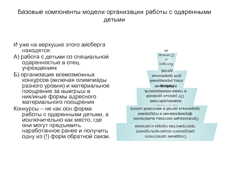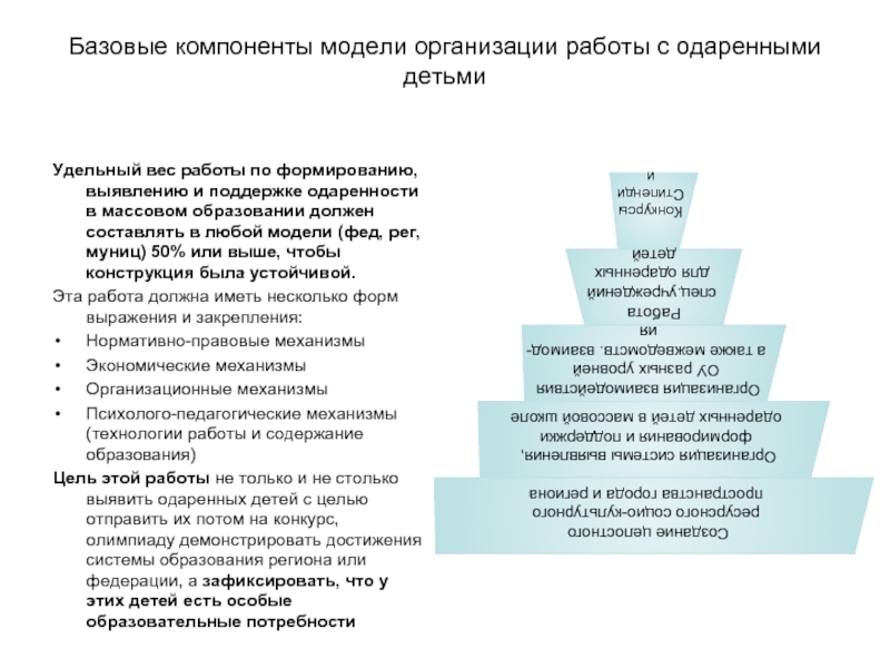 Слайд 9Базовые компоненты модели организации работы с одаренными детьми