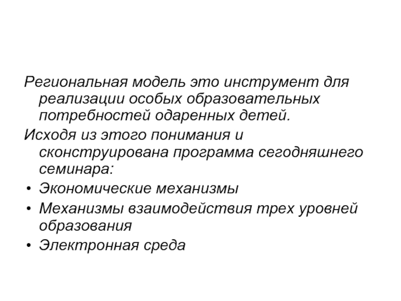 Региональная модель это инструмент для реализации особых образовательных потребностей одаренных детей.