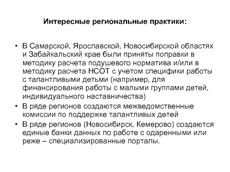 В ряде регионов (Новосибирск, Кемерово) создаются единые банки данных по работе с одаренными или реже – специализированные порталы.