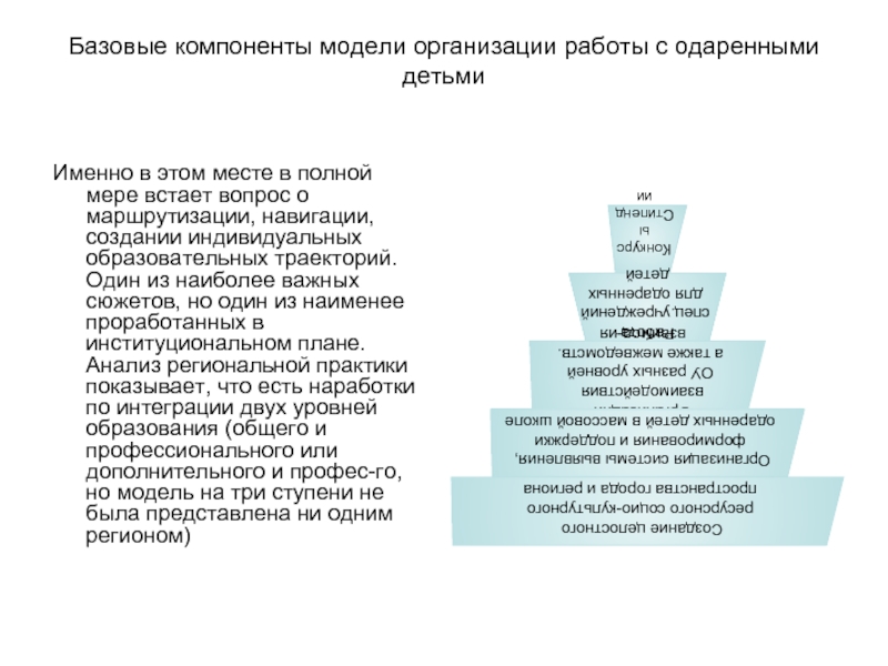 Слайд 10Базовые компоненты модели организации работы с одаренными детьми