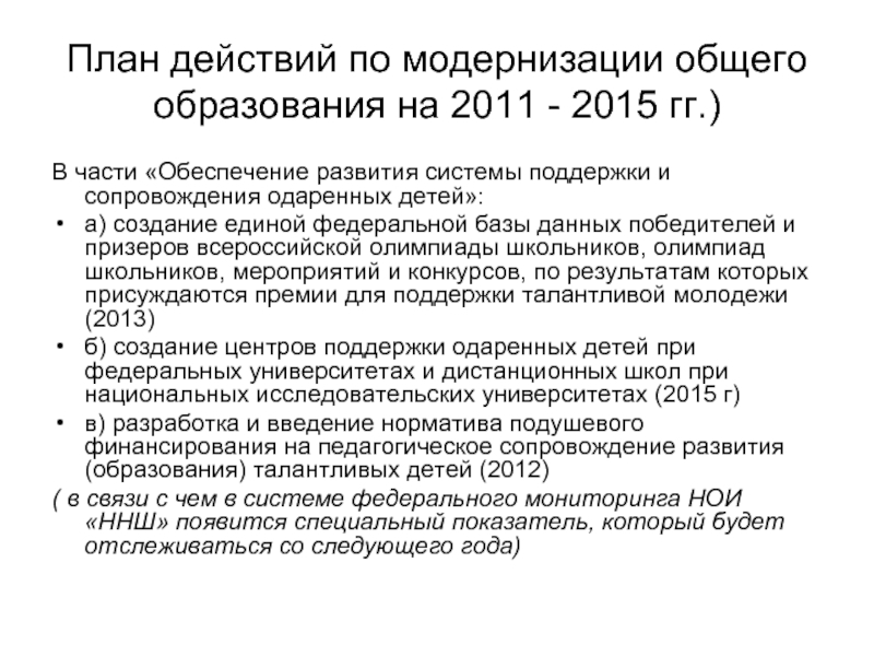Слайд 18План действий по модернизации общего образования на 2011 - 2015 гг.)