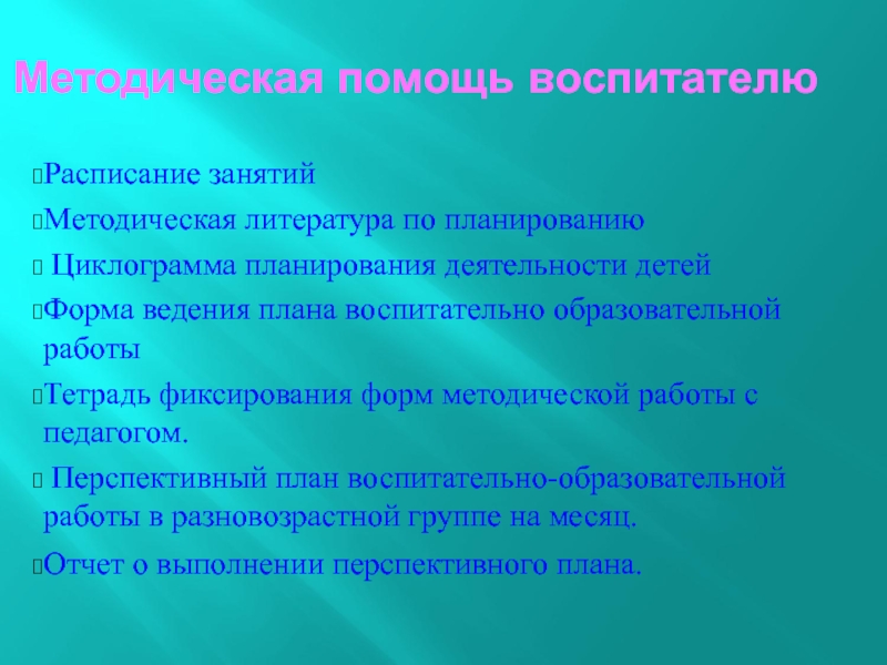 Ознакомление педагога с педагогическим процессом в ДОУ, задачами программы воспитания и образования , предметно-развивающей средой, режимом дня, расписанием занятий.