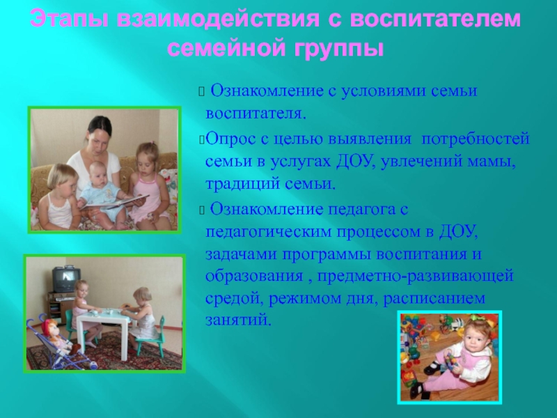 Слайд 3Формы взаимодействия с воспитателем семейной группы