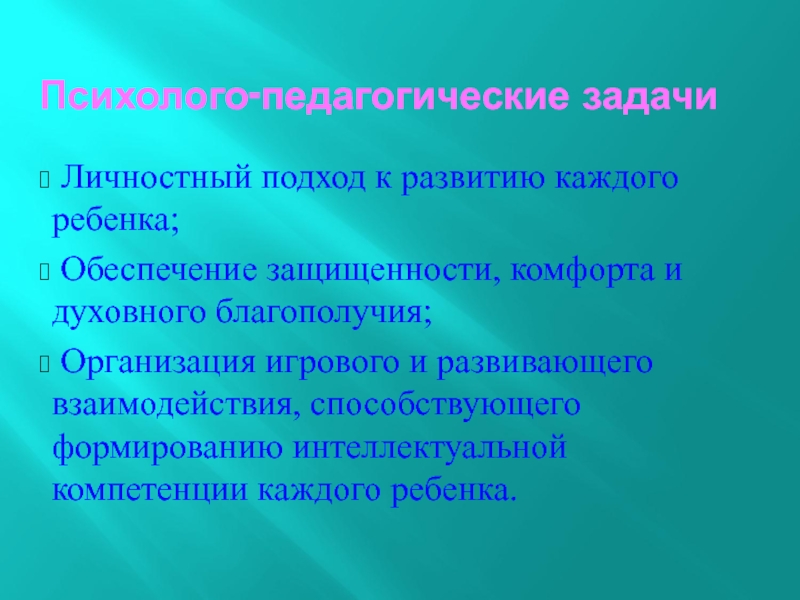 Организация игрового и развивающего взаимодействия, способствующего формированию интеллектуальной компетенции каждого ребенка.