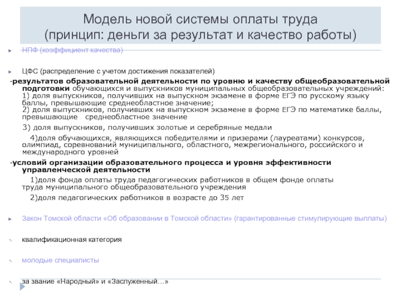 Закон Томской области «Об образовании в Томской области» (гарантированные стимулирующие выплаты)