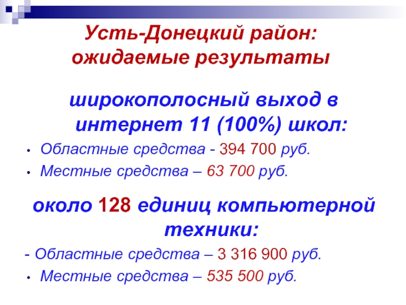 Слайд 1Реализация проекта по модернизации системы общего образования Ростовской области и Усть-Донецкого