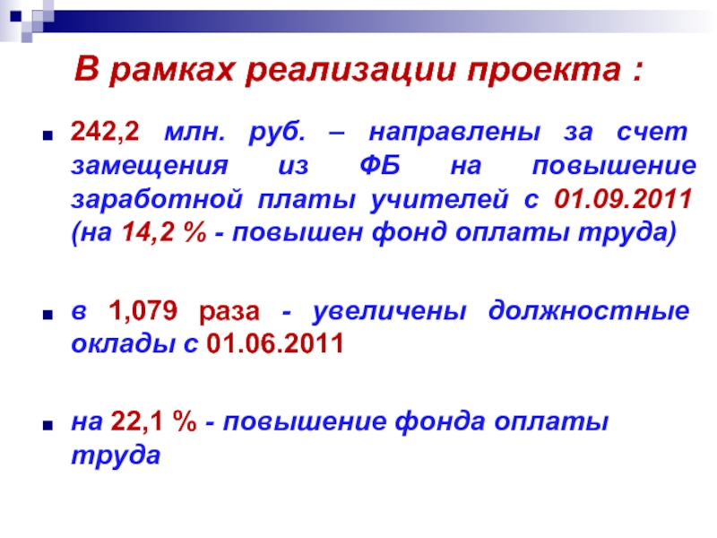 замещения из ФБ на повышение заработной платы учителей с 01.09.2011 (на 14,2 % - повышен фонд оплаты труда)