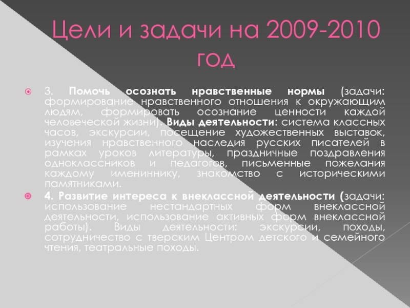 Слайд 2Цели и задачи на 2009-2010 год
