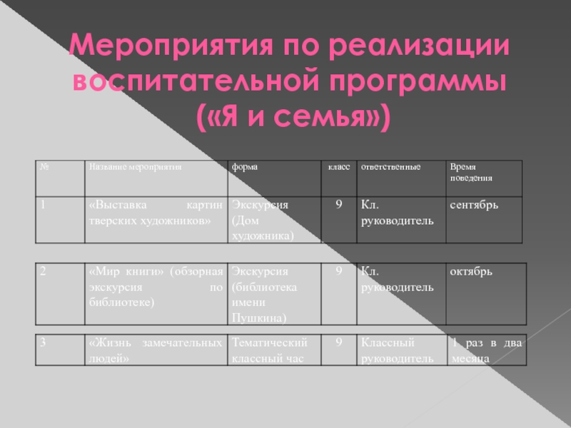 Мероприятия по реализации воспитательной программы
