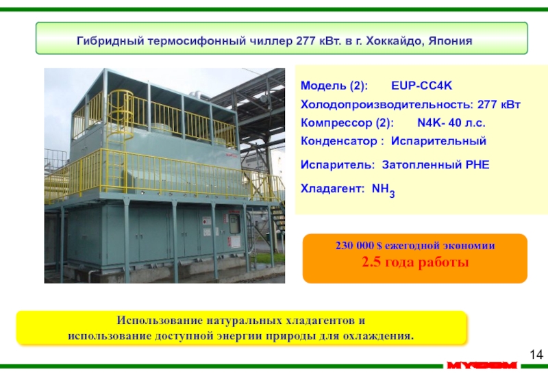 Гибридный термосифонный чиллер 277 кВт. в г. Хоккайдо, Япония
