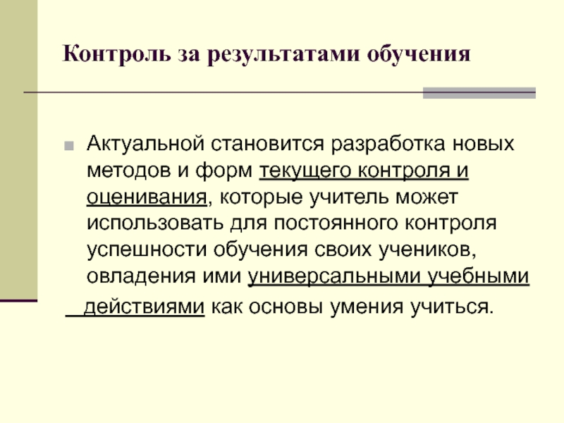 контроля и оценивания, которые учитель может использовать для постоянного контроля успешности обучения своих учеников, овладения ими универсальными учебными