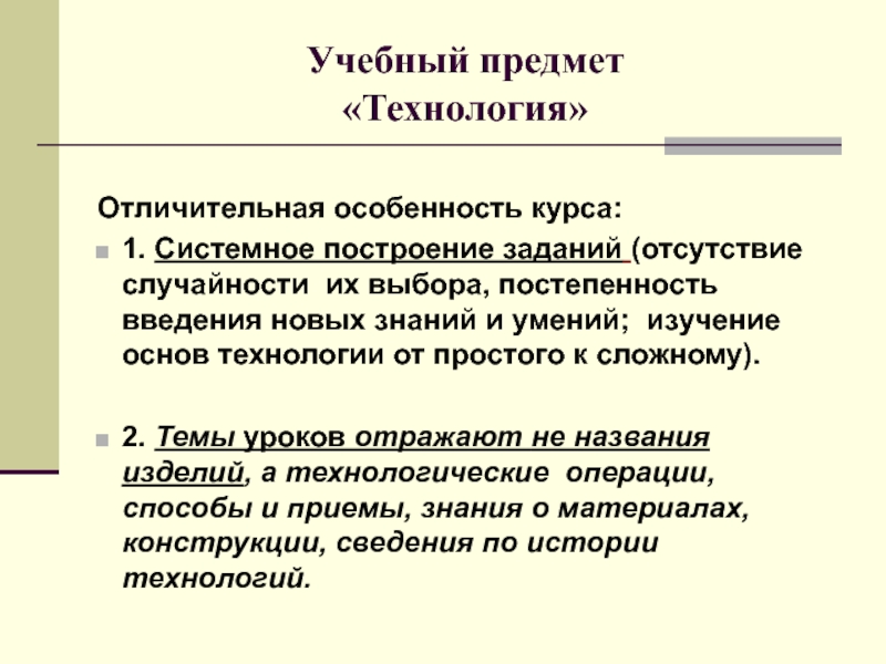 2. Темы уроков отражают не названия изделий, а технологические операции, способы и приемы, знания о материалах, конструкции, сведения по истории технологий.