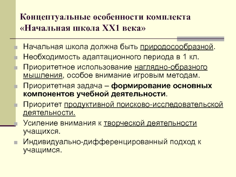 Слайд 2Концептуальные особенности комплекта «Начальная школа ХХ1 века»