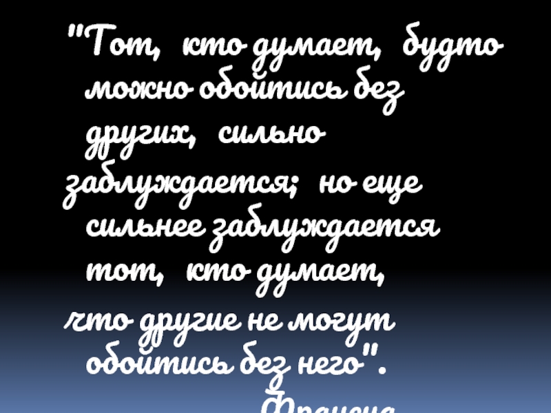 Слайд 2"Тот, кто думает, будто можно обойтись без других, сильно