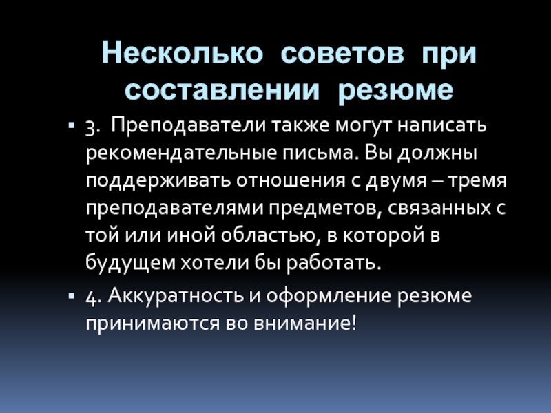 Вы должны поддерживать отношения с двумя – тремя преподавателями предметов, связанных с той или иной областью, в которой в будущем хотели бы работать.