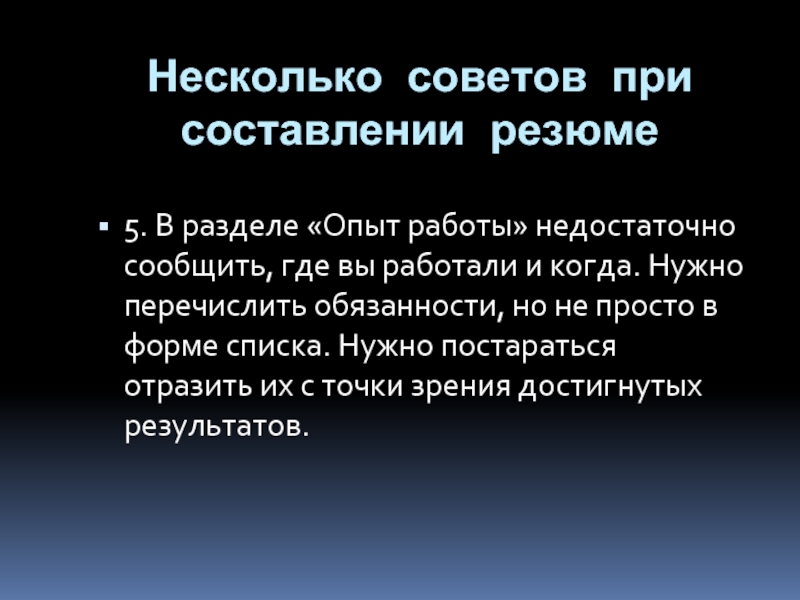 5. В разделе «Опыт работы» недостаточно сообщить,