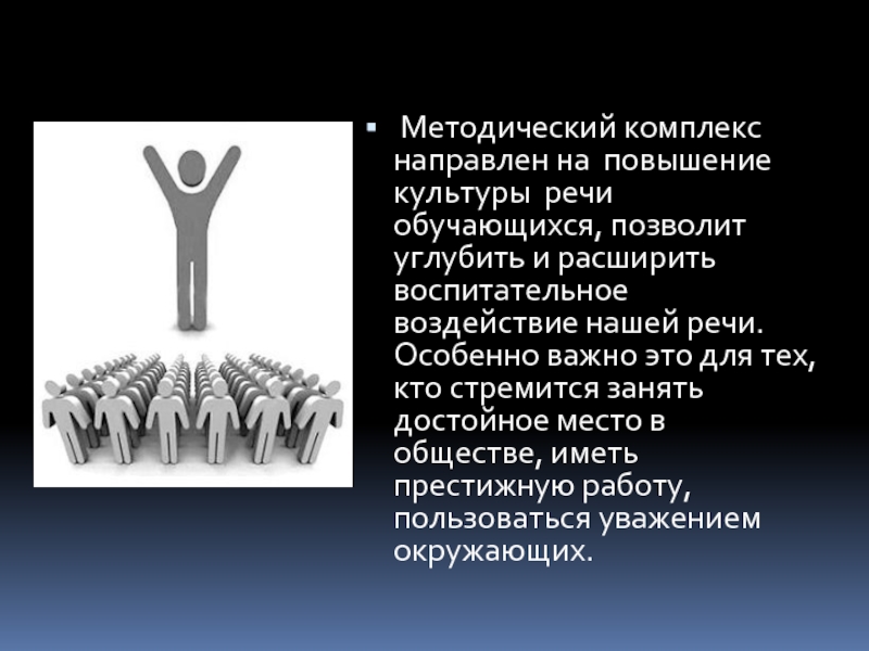Слайд 24 Методический комплекс направлен на повышение культуры  речи обучающихся, позволит углубить и