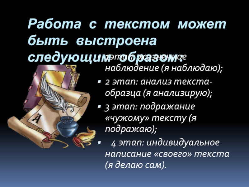 Слайд 31Работа с текстом может быть выстроена следующим образом: