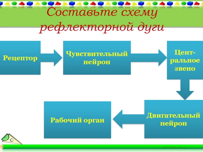 Слайд 14Составьте схему рефлекторной дуги