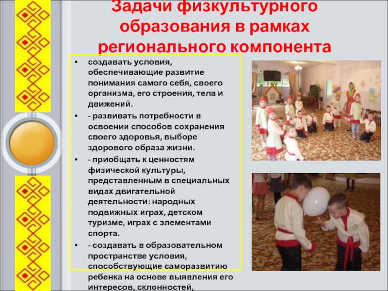 Слайд 5Задачи физкультурного образования в рамках регионального компонента