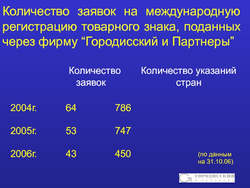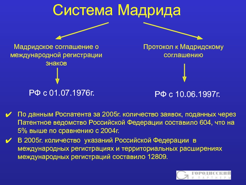 По данным Роспатента за 2005г. количество заявок, поданных через Патентное ведомство Российской Федерации составило 604, что на 5% выше по сравнению с 2004г.