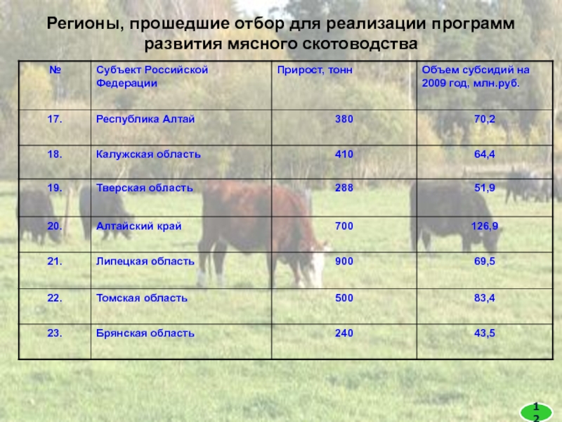Регионы, прошедшие отбор для реализации программ развития мясного скотоводства презентация