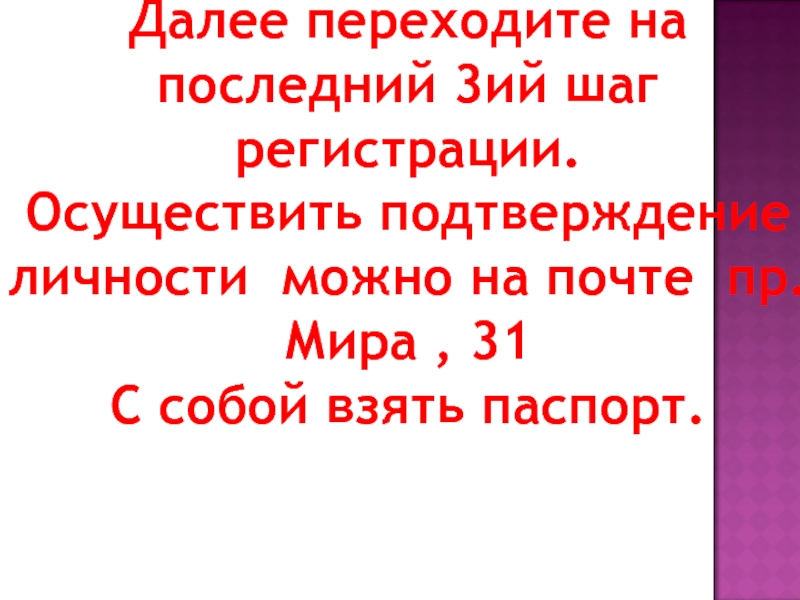 Слайд 12Далее переходите на последний 3ий шаг регистрации.