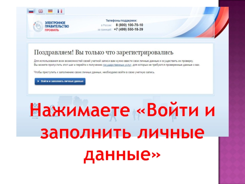 Слайд 8Нажимаете «Войти и заполнить личные данные»