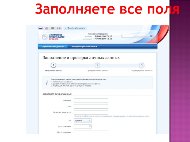 Слайд 9Заполняете все поля