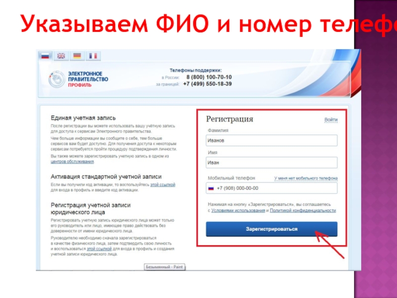 Слайд 5Указываем ФИО и номер телефона