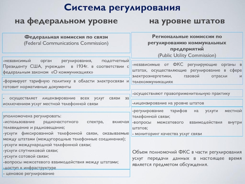 -независимый орган регулирования, подотчетный Президенту США, учрежден в 1934г. в соответствии с федеральным законом «О коммуникациях»
