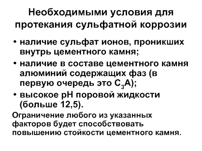 Слайд 85Требования к составу и свойствам цементов для условий сероводородной агрессии