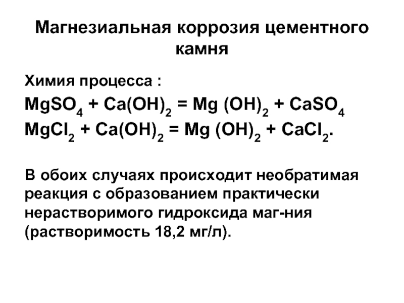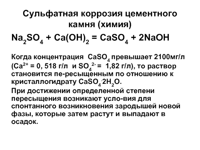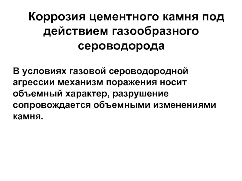 Слайд 80Коррозия цементного камня под действием растворенного сероводорода